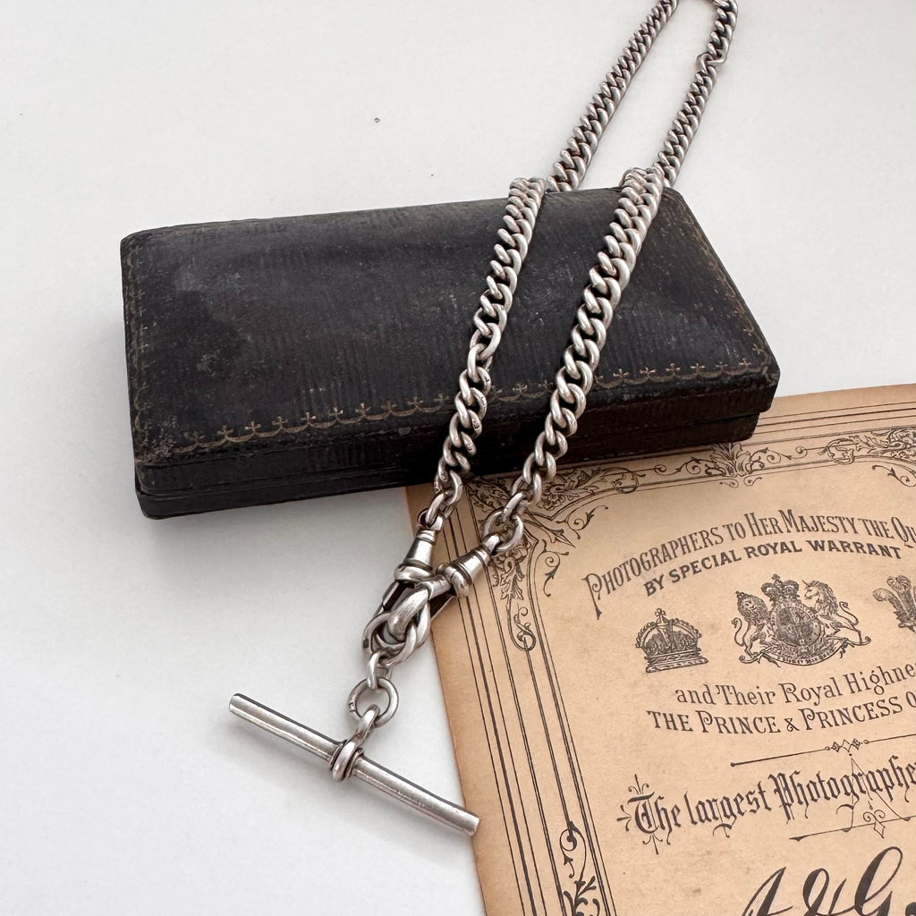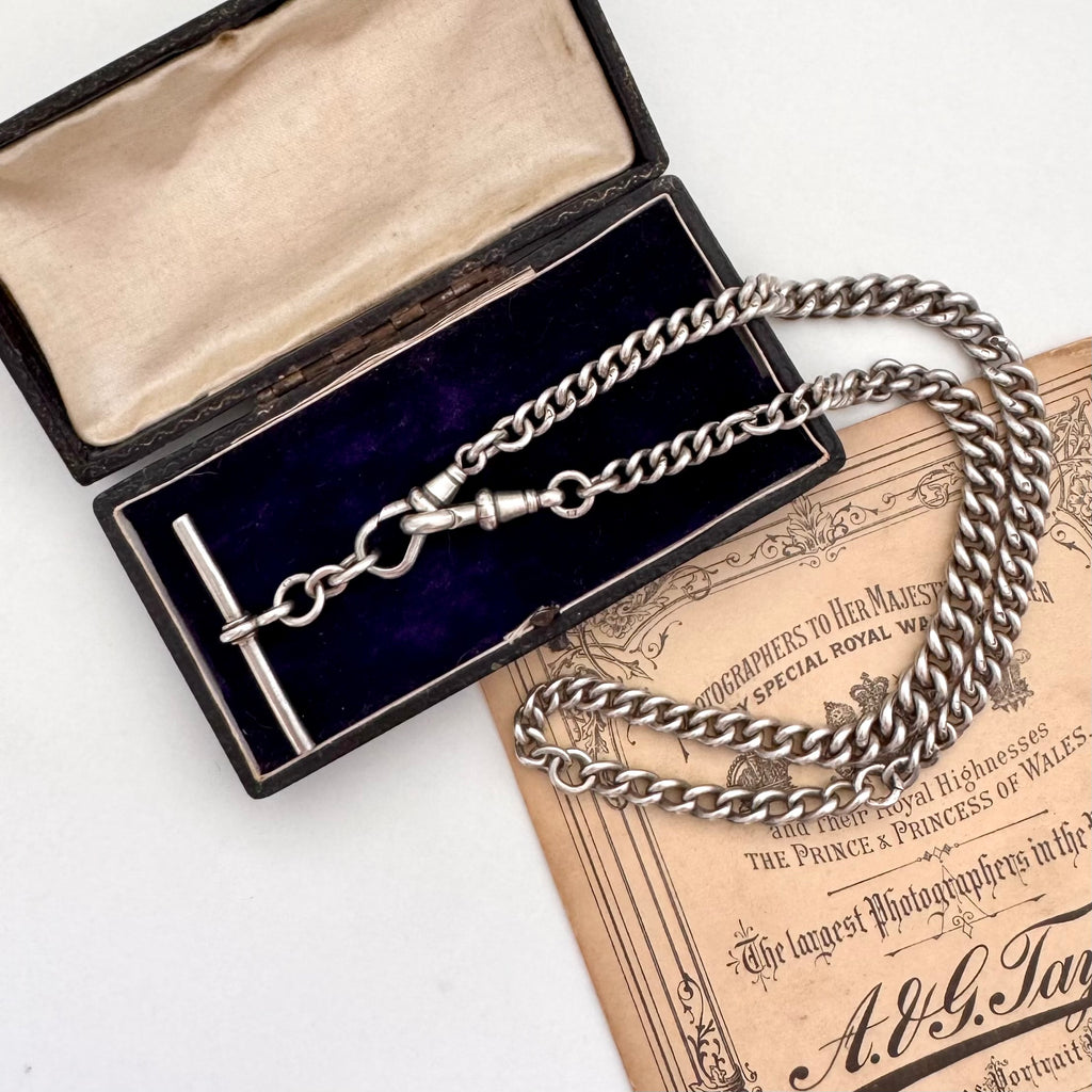 SOLD Antique Sterling Silver Watch Chain Necklace