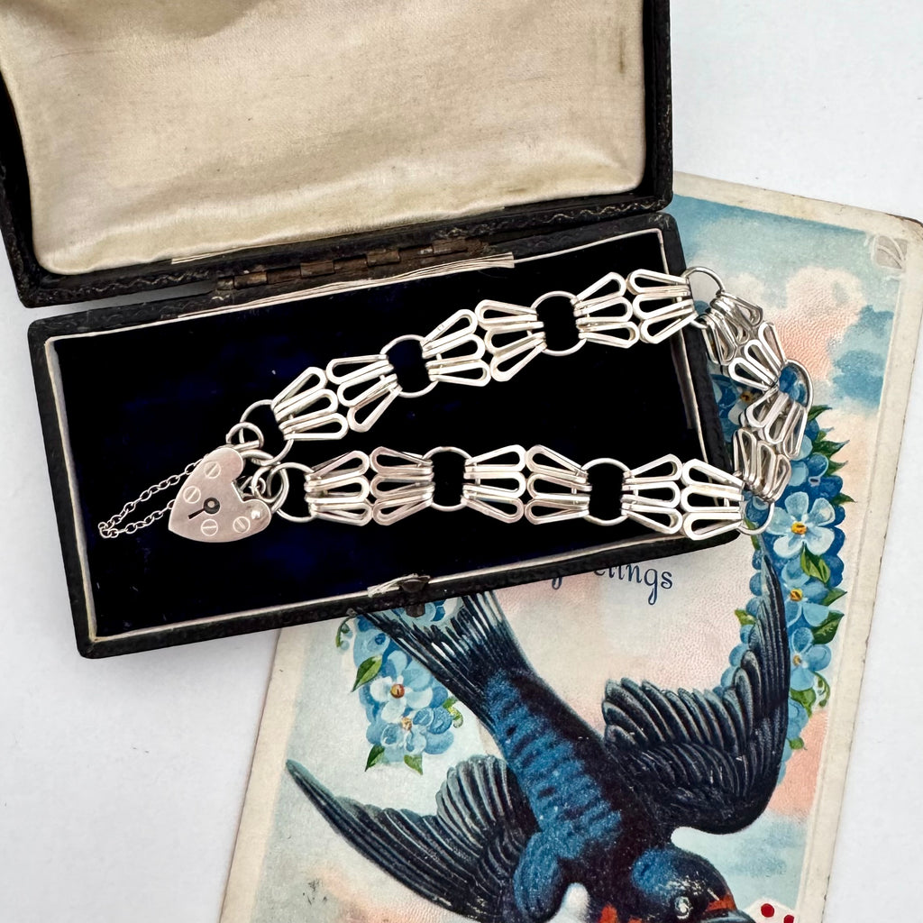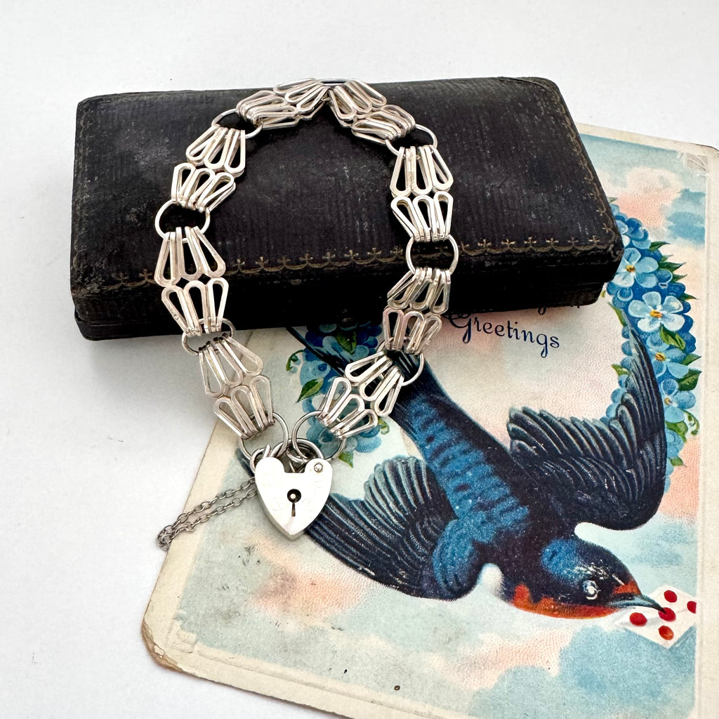 SOLD Vintage 1977 Sterling Silver Fancy Link Heart Bracelet
