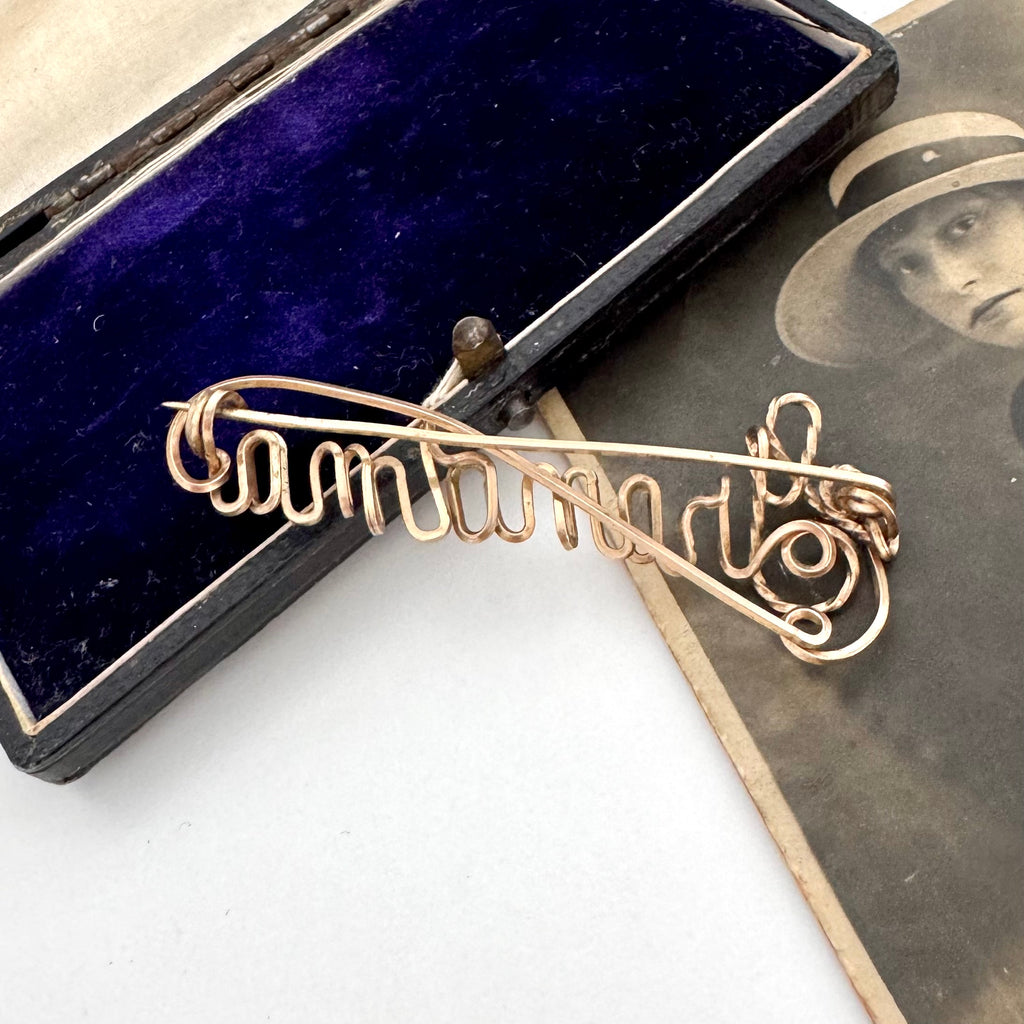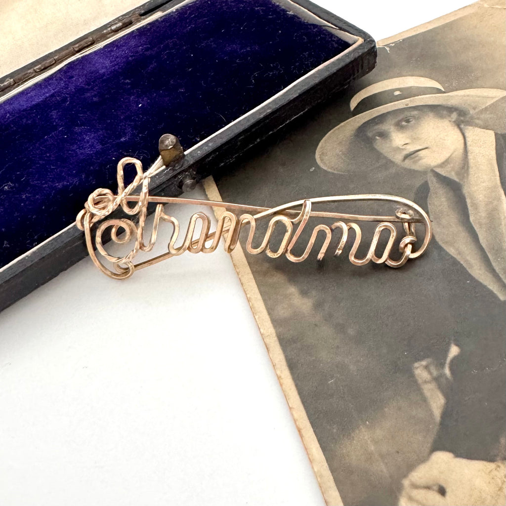 Vintage 1950s Gold Tone Grandma Wire Name Brooch