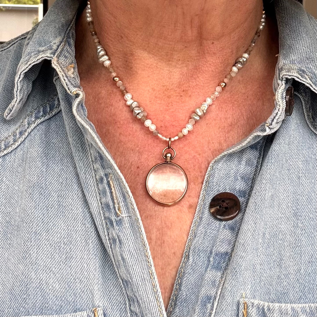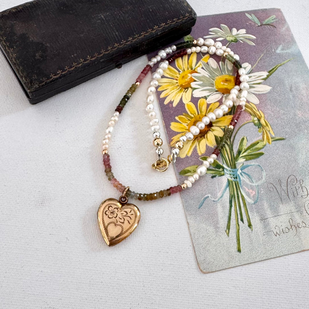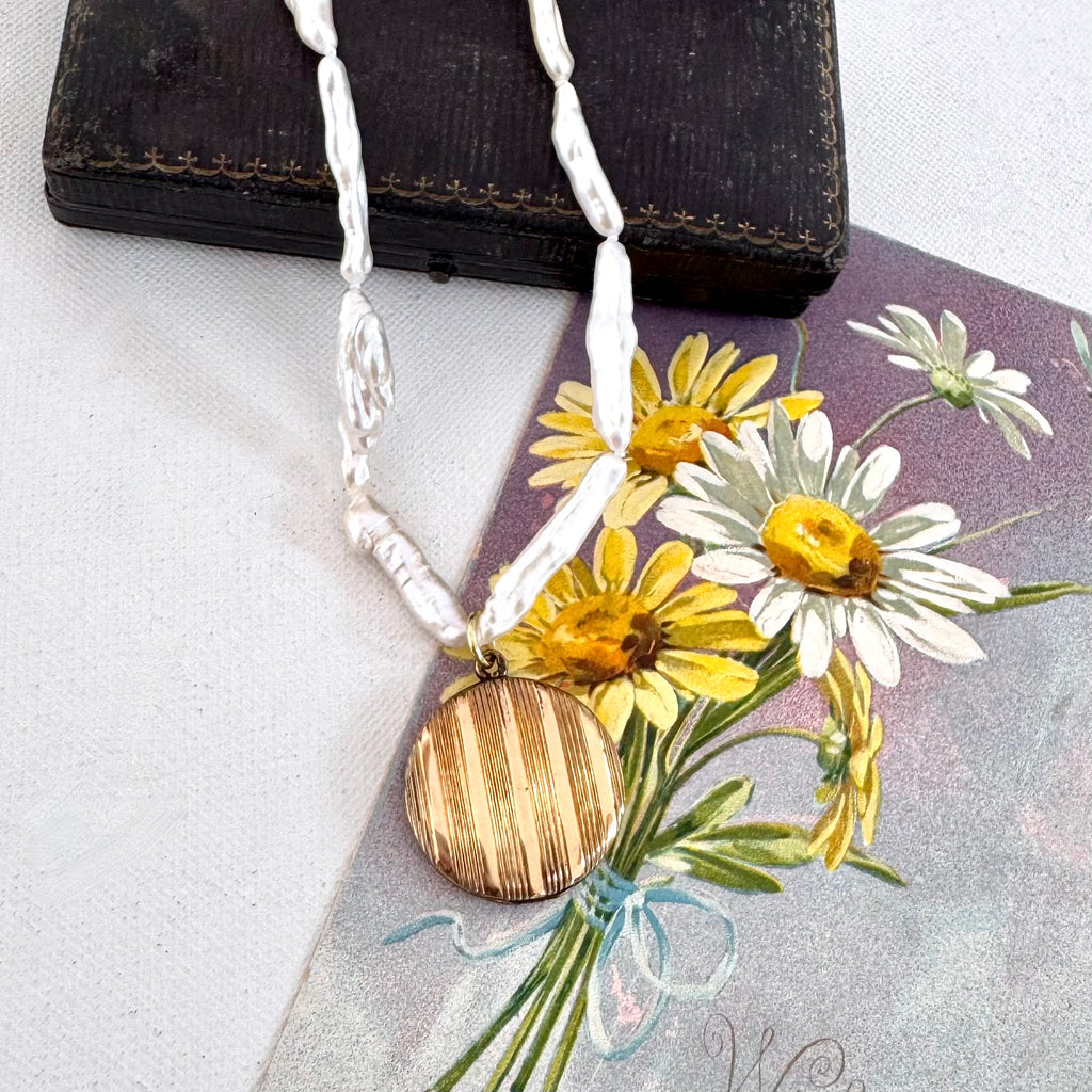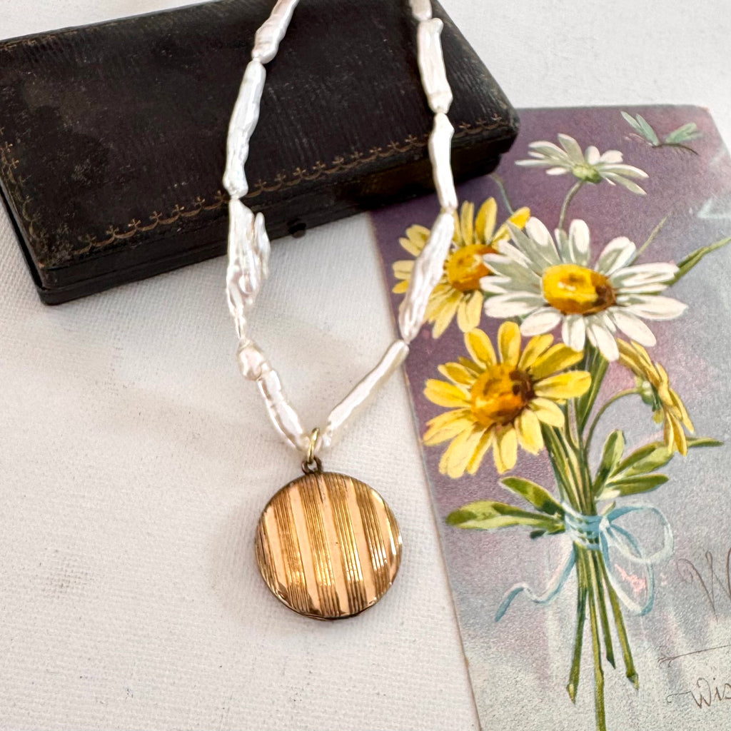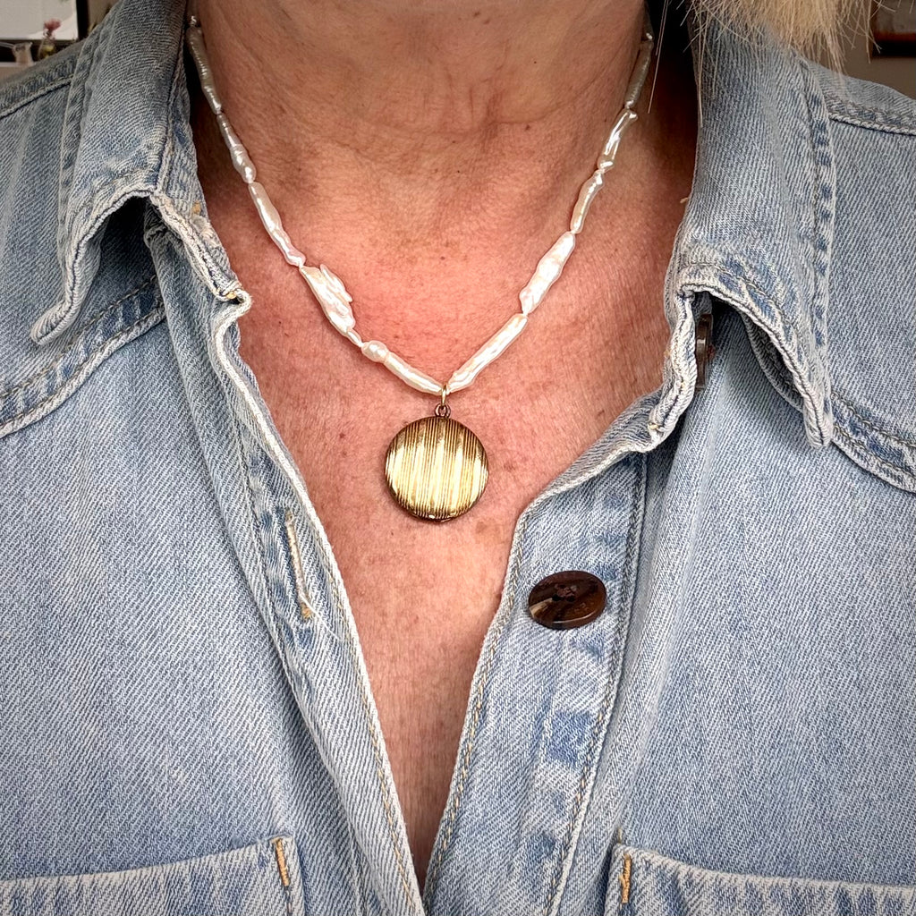SOLD Vintage Rolled Gold Locket And Pearl Necklace