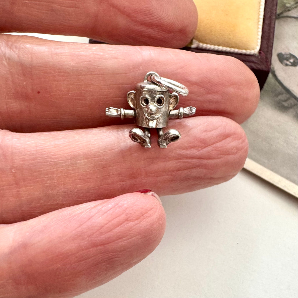 Vintage sterling silver articulated Dusty Bin charm. His arms and legs move.